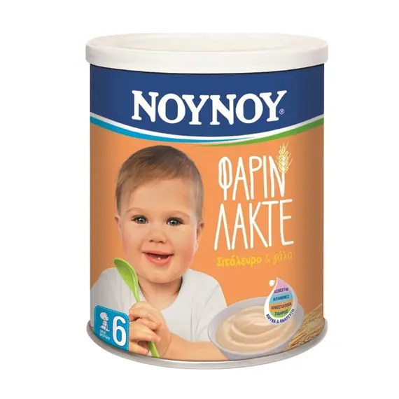 Βρεφική Κρέμα ΝΟΥΝΟΥ Φαρίν Λακτέ Σιτάλευρο & Γάλα 6m+ 300gr Αποτελεί μία καλά ισορροπημένη συμπληρωματική τροφή για βρέφη μετά τον 6ο μήνα. Περιέχει απαραίτητες βιταμίνες και ιχνοστοιχεία σε ιδανικές