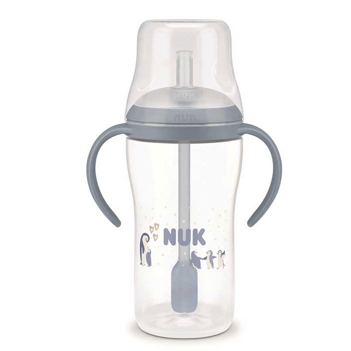 Nuk Perfect Match Εκπαιδευτικό Μπιμπερό με Καλαμάκι Σιλικόνης Penguin 8m+ 260ml Tα μπιμπερό διαθέτουν ένα μαλακό, φιλικό προς το δέρμα στόμιο, ειδικά σχεδιασμένο για την πιο φυσική μετάβαση από το
