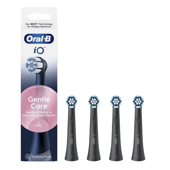 Oral-B iO Gentle Care Brush Heads Black 4τεμ Ανταλλακτικές κεφαλές βουρτσίσματος για απαλό και επαγγελματικό καθαρισμό των ευαίσθητων δοντιών και ούλων σε μαύρο χρώμα. Οι ανταλλακτικές κεφαλές Gentl