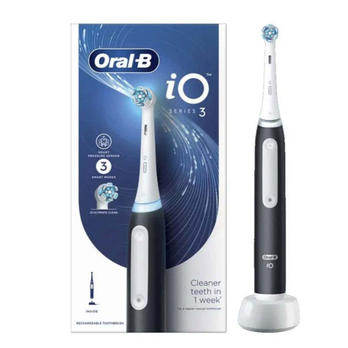 Oral-B Io Series 3 Ηλεκτρική Οδοντόβουρτσα με Αισθητήρα Πίεσης Μαύρο Χρώμα Η ηλεκτρική οδοντόβουρτσα iO 3 διαθέτει την καλύτερη τεχνολογία της Oral-B, συνδυάζοντας τη στρογγυλή κεφαλή βουρτσίσματος ε