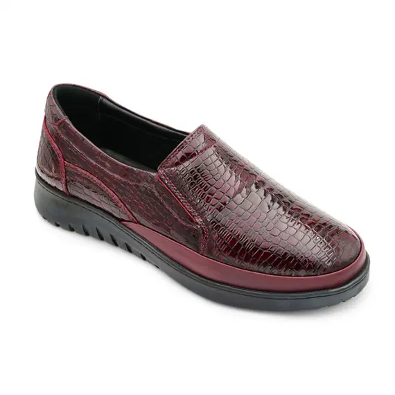 Level Anatomic Παπούτσι Γυναικείο 6591 Μπορντό Χρώμα Αναβαθμίστε το στυλ σας με αυτά τα κομψά slip-on ανατομικά παπούτσια. Κατασκευασμένα από δέρμα με εντυπωσιακή ανάγλυφη κροκό υφή και γυαλιστερό φι