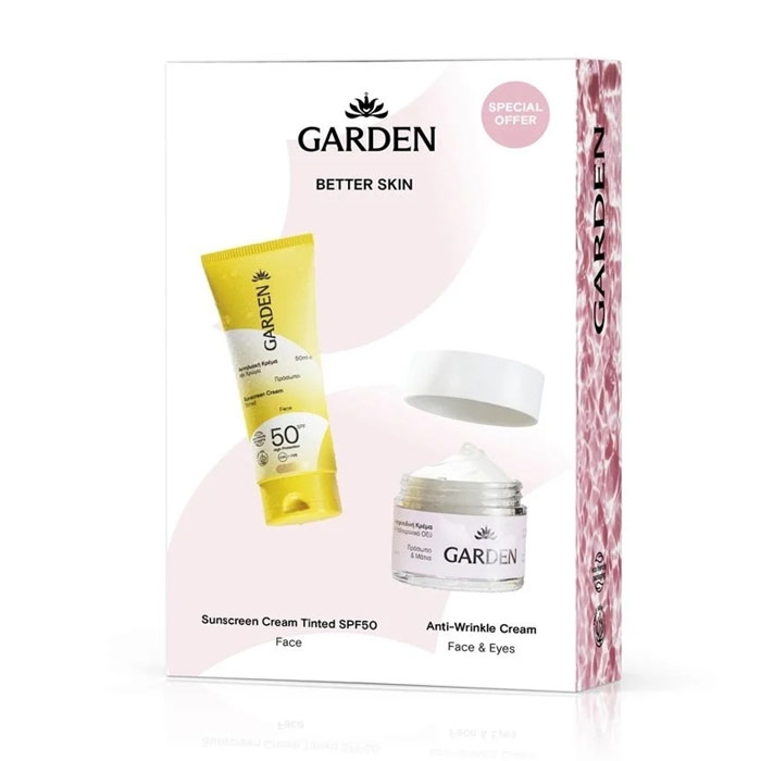Garden Promo Pack Box Better Skin Αντηλιακή Κρέμα Προσώπου με Χρώμα SPF50 50ml & Αντιρυτιδική Κρέμα με Υαλουρονικό Οξύ 50ml