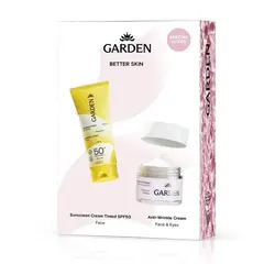 Garden Promo Pack Box Better Skin Αντηλιακή Κρέμα Προσώπου με Χρώμα SPF50 50ml & Αντιρυτιδική Κρέμα με Υαλουρονικό Οξύ 50ml To promo set Garden περιέχει : Αντηλιακή Κρέμα Προσώπου με Χρώμα SPF50 50m