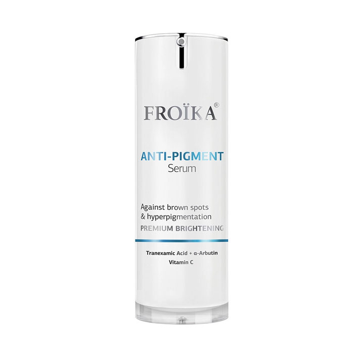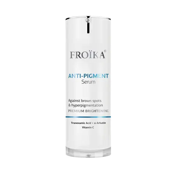 Froika Anti-Pigment Serum Ορός Κατά των Δυσχρωμιών 30ml Ορός ενυδάτωσης προσώπου με αντιγηραντική δράση, κατάλληλος για όλους τους τύπους επιδερμίδας. Χάρη στη σύνθεσή του απορροφάται γρήγορα και ε