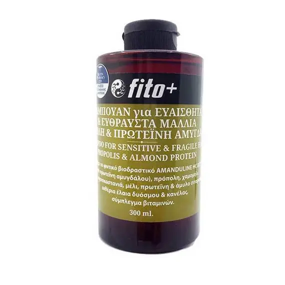 Fito+ Σαμπουάν για Ευαίσθητα και Εύθραυστα Μαλλιά με Πρόπολη και Πρωτεΐνη Αμυγδάλου 300ml Περιέχει το φυτικό βιοδραστικό AMANDULINE HC BIO® (από πρωτεΐνη αμυγδάλου), πρόπολη, χαμομήλι, αλόη, αγριοκασ