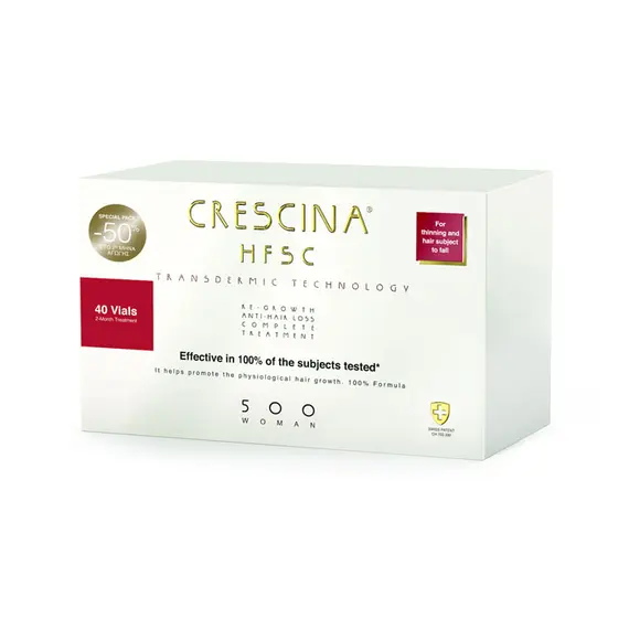 Labo Crescina Transdermic HFSC Woman 500 Αμπούλες Μαλλιών κατά της Τριχόπτωσης 40x3.5ml Αγωγή για γυναίκες με μεσαία στάδια αραίωσης και έντονη τριχόπτωση. Ενεργοποιεί τη φυσιολογική ανάπτυξη των μαλ