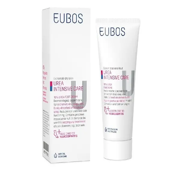 Eubos Urea 10% Ενυδατική Κρέμα Ανάπλασης Ποδιών 100ml Η Eubos Urea 10% Foot Cream είναι εξειδικευμένη κρέμα ποδιών για έντονα ξηρό, τραχύ και σκασμένο δέρμα, ιδανική για την καθημερινή φροντίδα των π