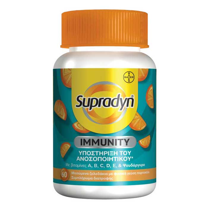 Supradyn Immunity Πολυβιταμίνη για Ενίσχυση του Ανοσοποιητικού Πορτοκάλι 60 ζελεδάκια Το Supradyn Immunity Gummies είναι ένα γευστικό συμπλήρωμα διατροφής που έχει σχεδιαστεί για να υποστηρίζει την ά