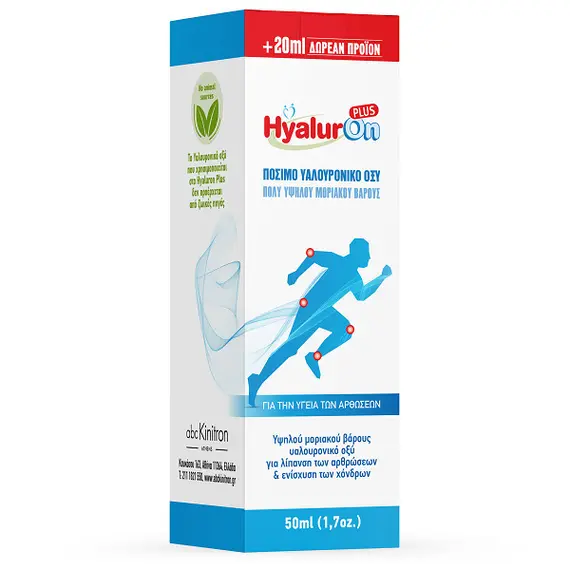 Abc Kinitron Hyaluron Plus Πόσιμο Υαλουρονικό Οξύ Πολύ Υψηλού Μοριακού Βάρους 50ml Το Υαλουρονικό Οξύ είναι μια ουσία που παράγεται φυσιολογικά στο ανθρώπινο σώμα με σκοπό την ενυδάτωση και την προστ