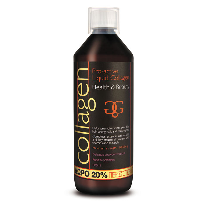 Collagen Pro Active Liquid Υγρό Πόσιμο Κολλαγόνο Φράουλα 600ml Το κολλαγόνο είναι απαραίτητη πρωτεΐνη του οργανισμού, που μεγαλώνοντας, μειώνεται με γοργούς ρυθμούς, ειδικά στις γυναίκες, προκαλώντα