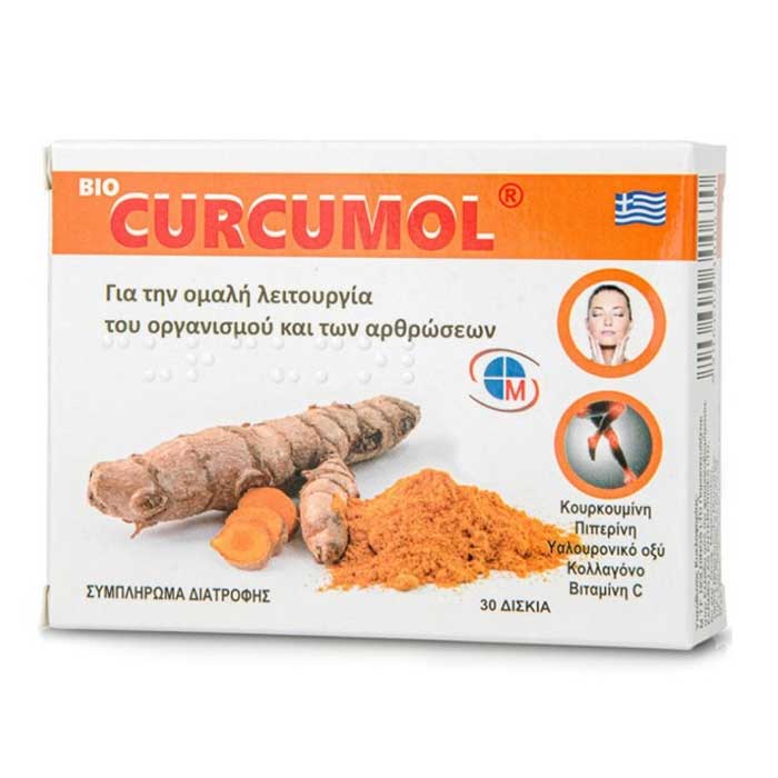 Συμπλήρωμα διατροφής Medichrom Bio Curcumol 30 ταμπλέτες με κουρκουμά, που συμβάλλει στην ομαλή λειτουργία του οργανισμού & των αρθρώσεων. Οφέλη Medichrom Bio Curcumol Η κουρκουμίνη με αντιοξειδωτ
