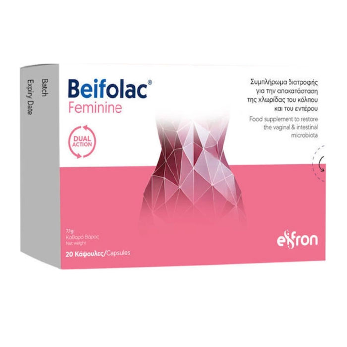 Eifron Beifolac Feminine Προβιοτικά 20 κάψουλες Η επιστήμη των προβιοτικών στη γυναικεία ευεξία! Προβιοτικό συμπλήρωμα διατροφής στοχευμένης υποστήριξης και διπλής δράσης για την αποκατάσταση και τη