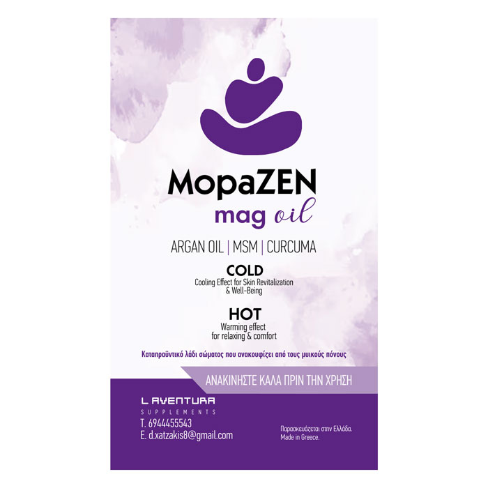 Mopazen mag oil Cold 100ml Εξειδικευμενη φορμουλα διαδερμικης απορροφησης "μαγνησιου" Mopazen mag oil 100ml Argal oil /msm/ curcuma Καταπραϋντικό λάδι σώματος που βοηθαει στην δυσμηνόρροια και ανακ